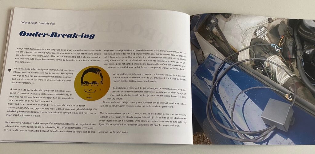De ruitenwisser interval schakelaar voor de Citroƫn DS staat in het clubblad van de Citroƫn ID/DS vereniging.